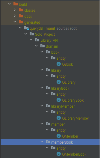 build/generated/querydsl 디렉토리의 각 엔티티에 Q Class가 생성된다.