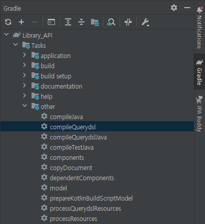 Gradle -> Tasks -> other -> compileQuerydsl 클릭