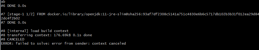 Docker 환경에서 빌드를 할 땐 대상 애플리케이션이 실행중이면 안되는 듯 하다...