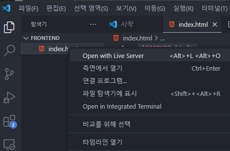 위와 같이 작성 한 이후 VS Code에서 html 실행