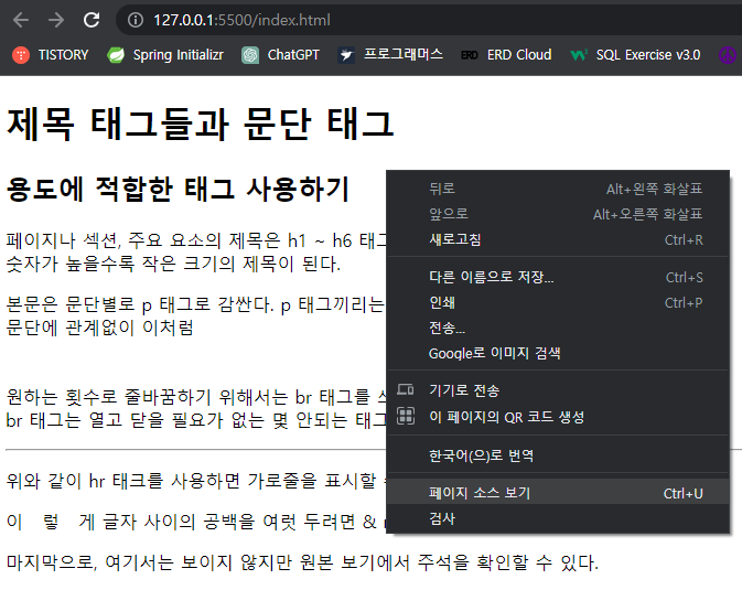 <p>마지막으로, 여기서는 보이지 않지만 원본 보기에서 주석을 확인할 수 있다.</p>