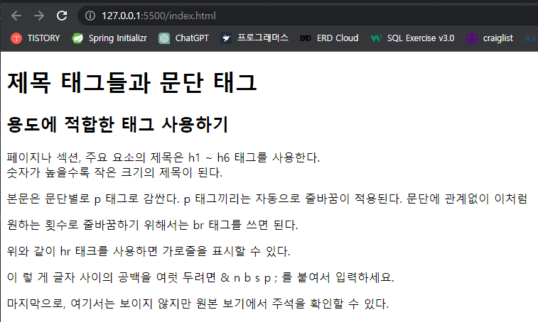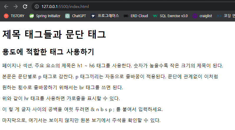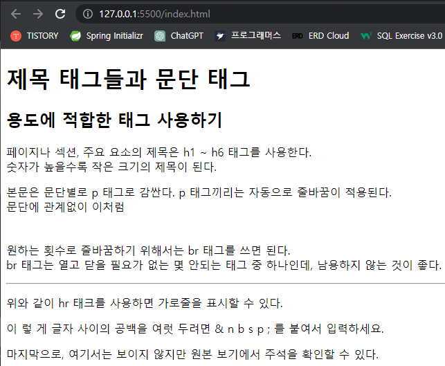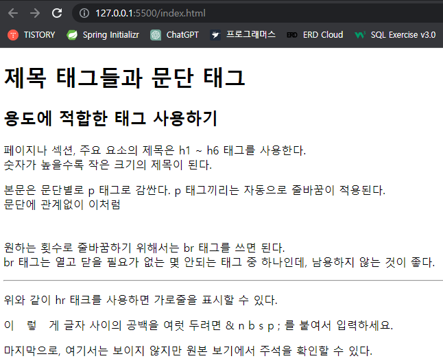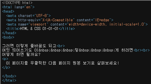 <body>안에 문단별로 나눠서 작성하고, 문자간 공간도 별도로 작성했지만,