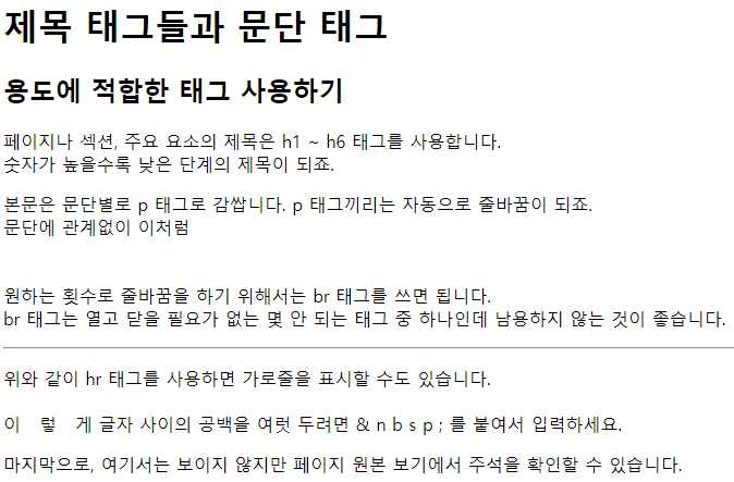 <h1>제목 태그들과 문단 태그</h1>
