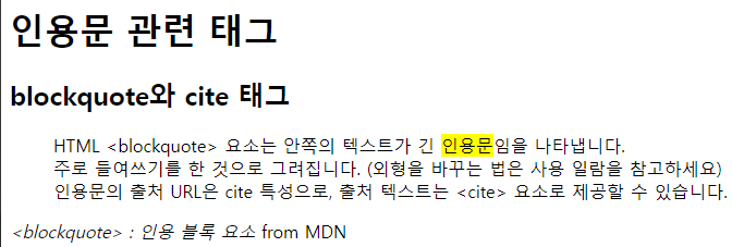 <blockquote cite="https://developer.mozilla.org/ko/docs/Web/HTML/Element/blockquote">