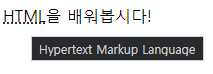 | <abbr> </abbr> | 준말/머릿글자 표시 (커서를 가져다 대면 내용 표기) |
