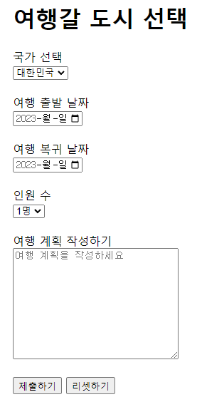 <h1>여행갈 도시 선택</h1>